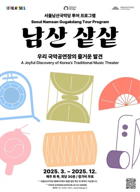 서울남산·돈화문국악당 관계자는 “‘샅샅’ 프로그램을 통해 시민들이 국악당의 공간적 매력을 더욱 가깝게 느끼고, 전통문화에 대한 관심을 높일 수 있길 기대한다”며 “이번 투어가 단순한 관람을 넘어 전통음악과 건축이 지닌 깊은 가치를 체험할 수 있는 기회가 될 것”이라고 전했다.