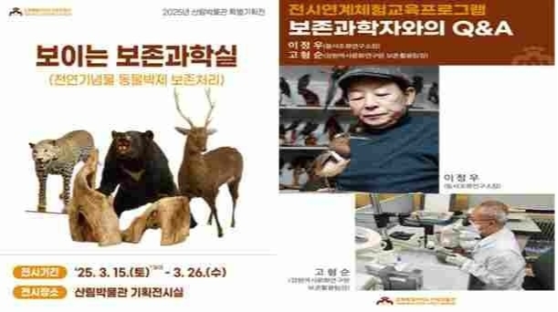 전시 기간 동안 보존과학자들은 산림박물관 기획 전시실에서 야생동물 박제의 보존 처리와 3D 콘텐츠 제작 과정을 시연하며, 박물관 소장품의 과학적 보존 관리에 대한 교육적 경험을 제공할 예정이다.