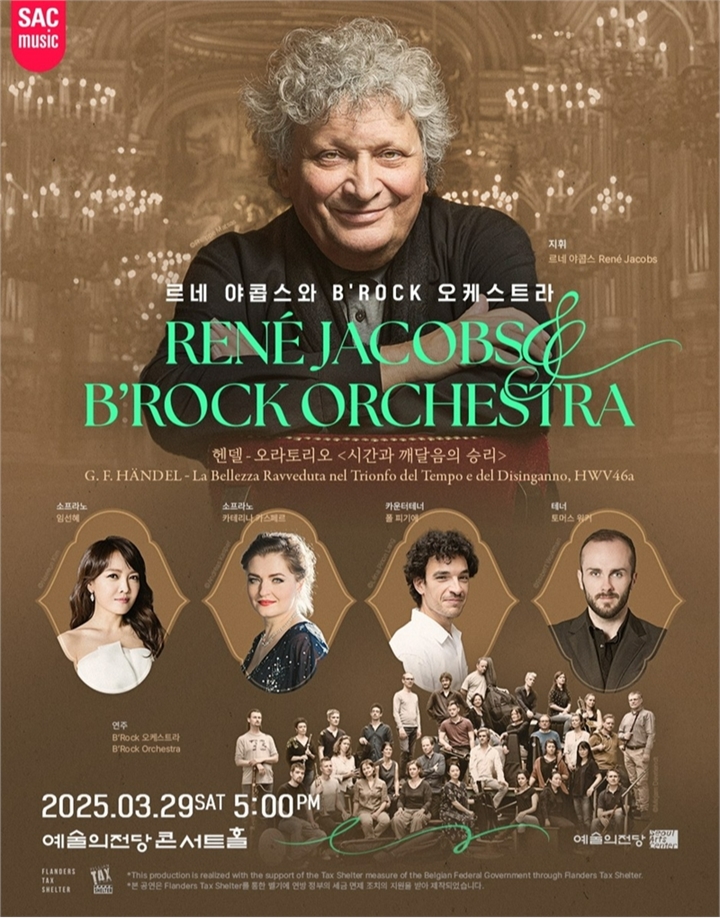 예술의전당 관계자는 “르네 야콥스와 비록 오케스트라가 들려주는 정통 바로크 음악의 깊이를 국내 관객들이 생생하게 경험할 기회”라며 “시대악기로 연주하는 헨델의 음악을 통해 바로크 시대의 감성과 사상을 더욱 깊이 느낄 수 있을 것”이라고 전했다.