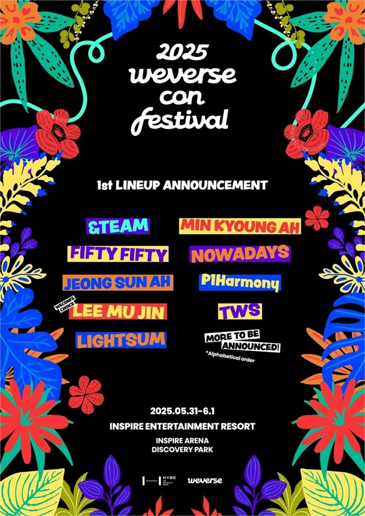 하이브와 팬 플랫폼 위버스가 주최하는 대규모 음악 축제 ‘2025 위버스콘 페스티벌’이 오는 5월 31일과 6월 1일 인천 영종도 인스파이어 엔터테인먼트 리조트에서 열린다.