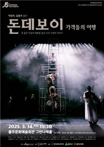울주문화재단은 배우 박정자와 길용우가 출연하는 연극 돈데보이: 가객들의 여행을 14일 오후 7시 30분 울주문화예술회관 그린나래홀에서 선보인다고 밝혔다.
