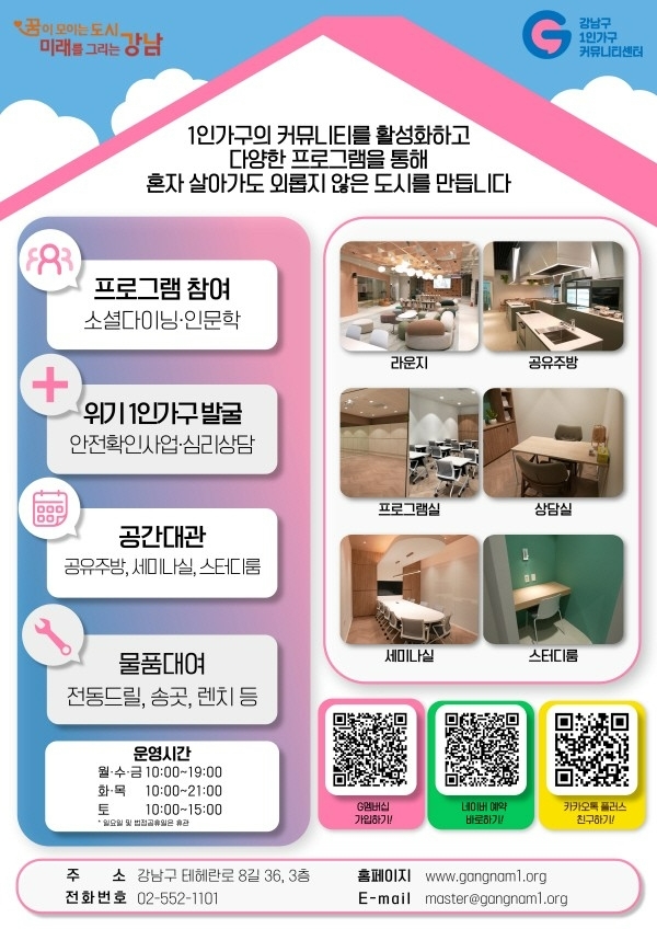 강남구는 지난해 6월 센터를 강남역 인근으로 확장 이전하며 프로그램을 대폭 늘렸다. 올해는 특히 단기·일회성 행사에서 벗어나 정규 프로그램을 확대하고, 1인가구의 생활에 실질적인 도움을 줄 수 있는 다양한 지원책을 마련했다.