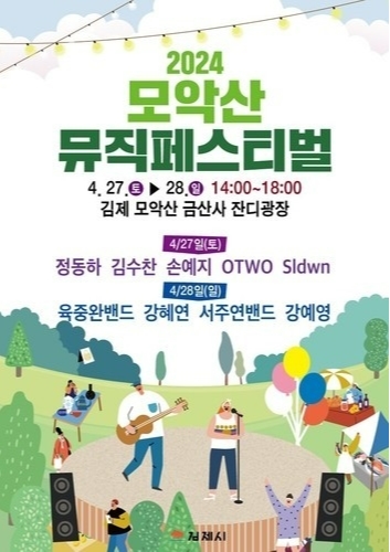 전북 김제시는 온 가족이 함께 즐길 수 있는 음악 축제 ‘2025 모악산 뮤직페스티벌’을 오는 4월 26일부터 27일까지 이틀간 모악산 잔디광장에서 개최한다고 밝혔다.