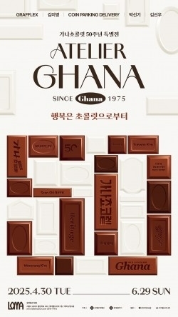 롯데웰푸드는 가나초콜릿 출시 50주년을 기념해 특별 전시회 ‘아뜰리에 가나: since 1975 - 행복은 초콜릿으로부터’를 오는 4월 30일부터 6월 29일까지 잠실 롯데뮤지엄에서 개최한다고 밝혔다. 이를 위해 3월 24일부터 4월 29일까지 티켓 예매를 진행한다.
