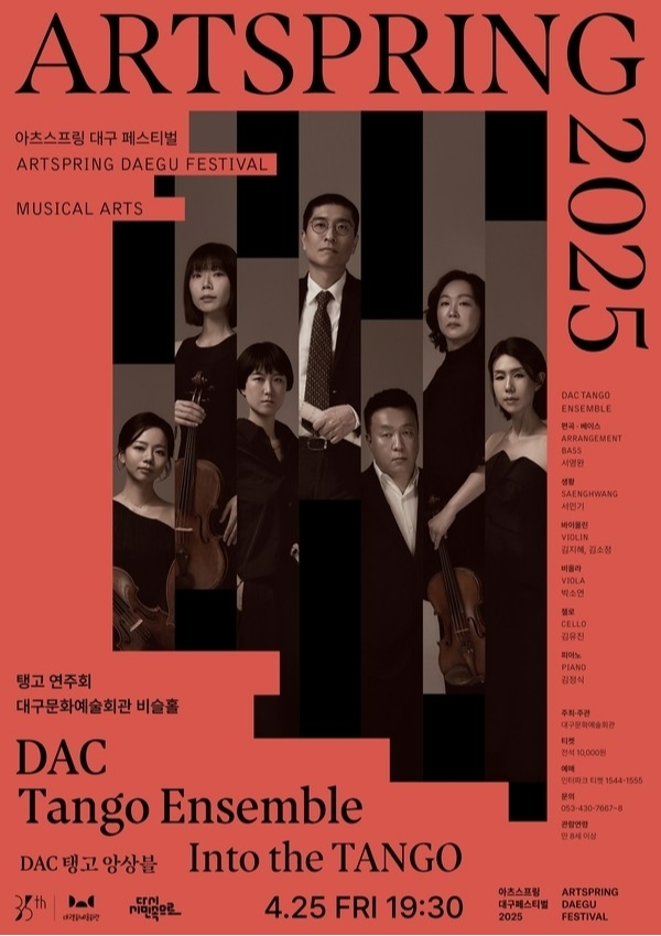 대구문화예술회관이 지역 예술인들의 창작 활동을 지원하는 ‘2025 아츠스프링 대구 페스티벌’의 일환으로 ‘DAC 탱고 앙상블’을 결성하고 오는 4월 25일 오후 7시 30분, 대구문예회관 비슬홀에서 첫 공연을 선보인다.