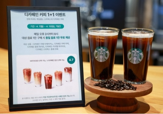 스타벅스 코리아는 7일부터 일주일 동안 오후 2시부터 8시 사이 디카페인 음료 구매 시 한 잔을 추가로 제공하는 ‘디카페인 커피 1+1 이벤트’를 진행한다고 밝혔다.