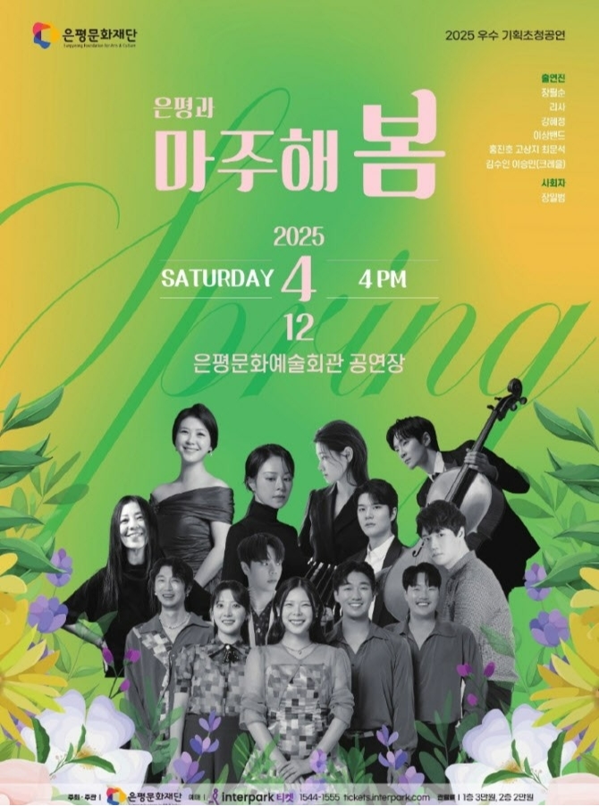 (재)은평문화재단은 오는 12일 서울 은평문화예술회관 공연장에서 2025 우수 기획 초청 공연 ‘은평과 마주해 봄’ 콘서트를 개최한다고 밝혔다. 이번 콘서트는 ‘잊고 있던 설렘을 일깨우는, 봄의 시작을 알리는’이라는 콘셉트 아래, 다양한 장르의 아티스트들이 참여해 다채로운 무대를 선보인다.