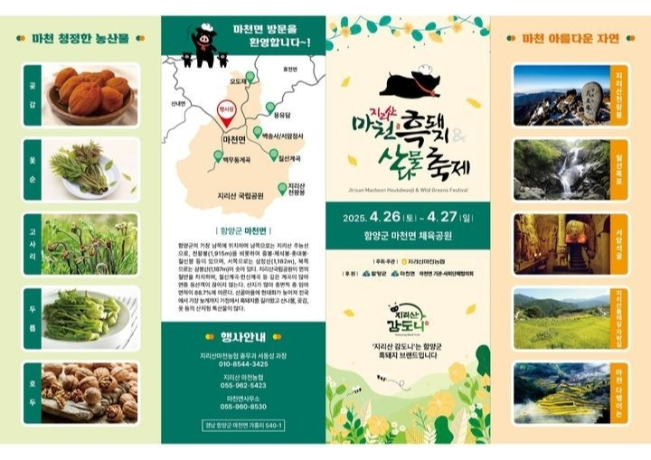 김복수 마천면장은 “지리산과 함께하는 이번 축제가 봄의 맛과 사람들의 따뜻한 정이 어우러진 특별한 시간이 되길 바란다”며 “많은 분들이 마천골을 찾아 향긋한 산나물과 고소한 흑돼지를 함께 즐기시길 바란다”고 전했다.