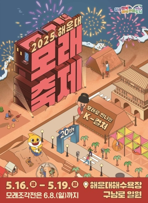 해운대구(구청장 김성수)는 ‘모래로 만나는 K-컬처’를 주제로 5월 16일부터 19일까지 ‘2025 해운대 모래축제’를 해운대해수욕장 일대에서 개최한다고 밝혔다.