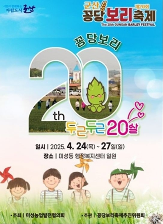 전북특별자치도 군산시를 대표하는 농업축제 ‘군산꽁당보리축제’가 올해로 20주년을 맞아 오는 4월 24일부터 27일까지 미성동 행정복지센터 일원에서 열린다.