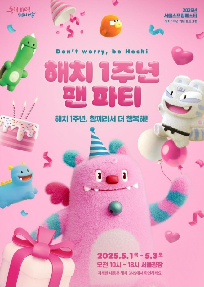 서울시 대표 캐릭터 ‘해치’가 탄생 1주년을 맞아 오는 5월 1일부터 3일까지 서울시청과 서울광장 일대에서 특별한 팬 이벤트 ‘해치 1주년 팬파티’를 개최한다. 이번 행사는 온 가족이 함께 즐길 수 있는 체험형 콘텐츠와 함께 해치의 매력을 다채롭게 느낄 수 있는 시간으로 꾸며진다.