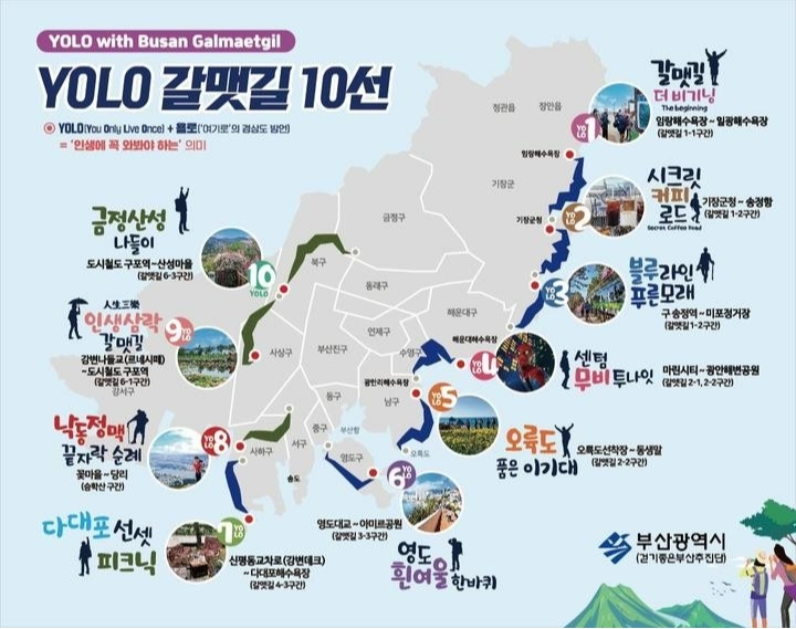 부산시는 오는 26일부터 6월 30일까지 두 달간 '욜로(YOLO) 갈맷길 함께 걷기 행사'를 운영한다고 밝혔다.
