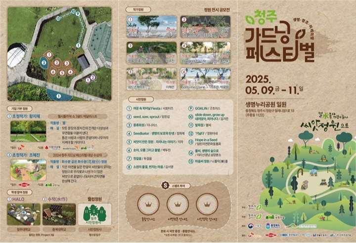 청주시는 정원문화 확산을 위해 오는 9일부터 11일까지 사흘간 청원구 주중동 생명누리공원에서 ‘2025 청주 가드닝 페스티벌’을 연다고 밝혔다.