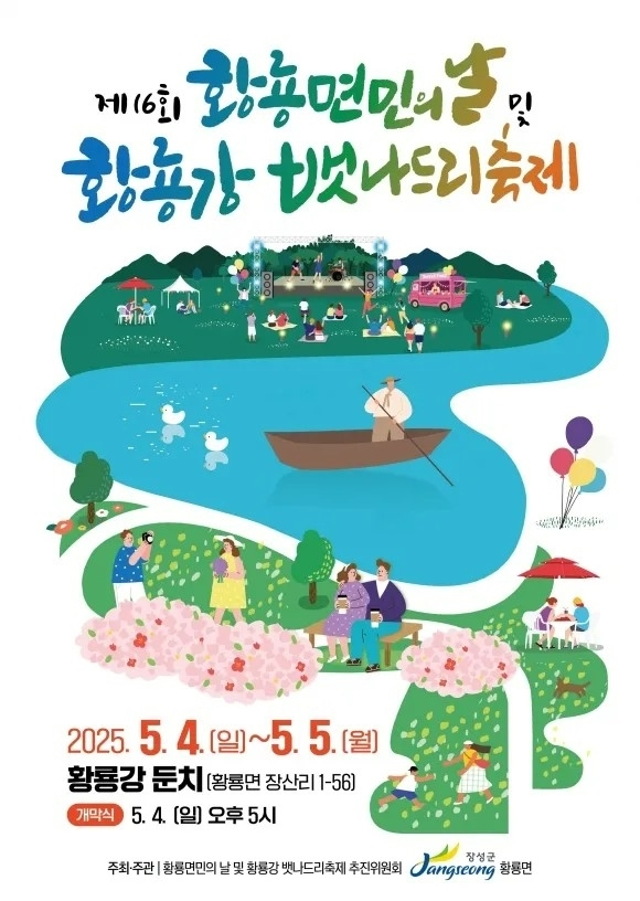 축제의 하이라이트는 황룡강을 건너는 나룻배 체험으로, 과거 나루터가 있었던 황룡면의 역사적 배경을 담은 특별한 콘텐츠다. 이외에도 소망배 달기, 꽃배 포토존, 물고기 잡기 체험, 에어바운스 놀이터, 즉석사진, 수공예, 앵무새 체험 등 다채로운 즐길 거리가 마련된다.