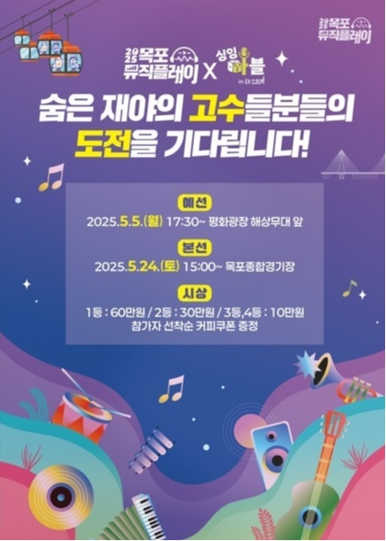 목포뮤직플레이는 지역 음악인과 시민, 관광객이 함께 어울리며 목포만의 특색 있는 음악문화를 즐길 수 있는 축제로, 매년 다채로운 공연과 프로그램으로 주목받고 있다. 시 관계자는 “이번 싱잉마블 예선전이 목포의 음악축제 열기를 높이고, 시민과 방문객 모두가 즐길 수 있는 특별한 하루가 되길 바란다”고 말했다.