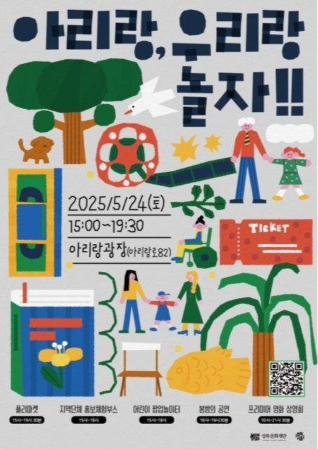 ‘아리랑, 우리랑 놀자!!’는 5월 24일(토) 오후 3시부터 운영되며, 행사 관련 상세 내용은 성북문화재단 공식 누리집(www.sbculture.or.kr)에서 확인할 수 있다.