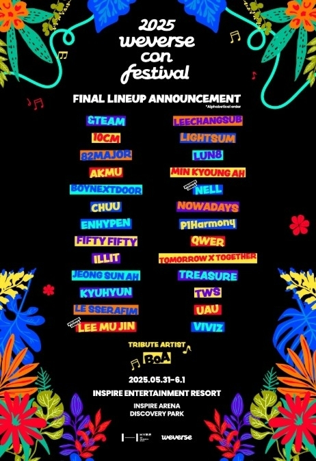 글로벌 팬덤 플랫폼 위버스(Weverse)가 주최하는 대규모 음악 축제 ‘2025 Weverse Con Festival’이 오는 5월 31일부터 6월 1일까지 인천 중구 인스파이어 엔터테인먼트 리조트에서 열린다. K팝의 과거와 현재, 미래를 조망하는 이번 페스티벌은 다양한 장르의 아티스트가 참여하는 공연과 팬 중심의 이벤트로 세계 음악 팬들의 큰 관심을 받고 있다.