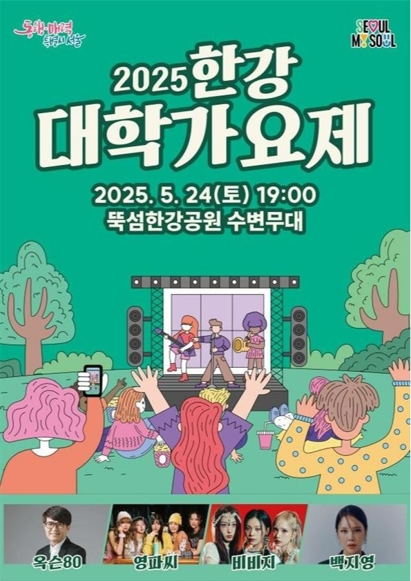 서울시는 오는 5월 24일 오후 7시, 뚝섬 한강공원 수변 무대에서 ‘2025 한강 대학가요제’를 개최한다고 밝혔다. 이번 행사는 지난해 여의도 한강공원에서 첫선을 보인 데 이어 두 번째로 열리는 청년 음악 경연 축제로, 1970~80년대 청춘의 아이콘이었던 MBC 대학가요제를 현대적으로 재해석해 선보이는 서울시 대표 음악 행사다.