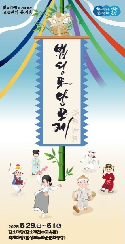 전남 영광군이 주최하고 (사)법성포단오제보존회가 주관하는 ‘2025 영광법성포단오제’가 오는 5월 29일부터 6월 1일까지 나흘간 법성포단오제 전수교육관과 법성포 뉴타운 일원에서 열린다. ‘빛과 바람이 기억하는 오백년의 흥겨움!’을 주제로 열리는 이번 행사는 유서 깊은 전통과 현대적 문화가 조화를 이루는 대한민국 대표 단오축제로 시민과 관광객의 관심을 모은다.