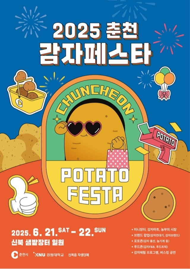 춘천시 관계자는 “2025 감자 페스타는 지역 농산물과 로컬 브랜드, 체험형 콘텐츠가 어우러지는 특별한 축제”라며 “방문객들에게 춘천만의 감자 문화를 오감으로 체험할 수 있는 즐거운 시간을 선사하고, 지역 관광 활성화에도 기여하길 기대한다”고 밝혔다.