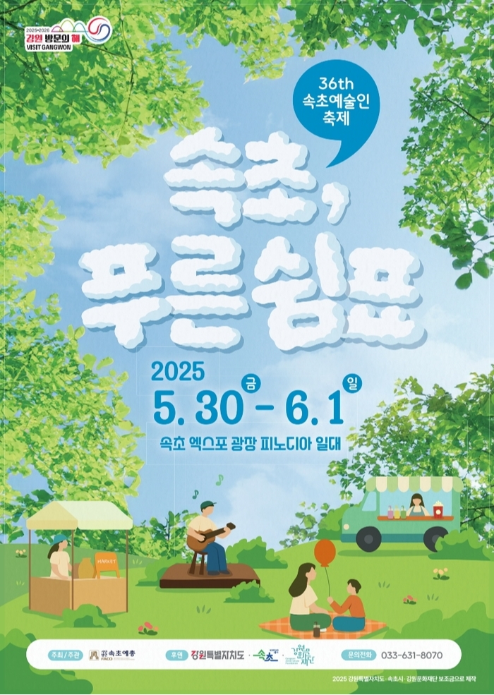 속초의 초여름이 예술로 가득 채워진다. 한국문화예술단체총연합회 속초지회(속초예총)는 오는 5월 30일부터 6월 1일까지 3일간 속초 엑스포 광장 일대에서 제36회 속초예술제를 개최한다고 밝혔다. 올해 예술제는 ‘속초, 푸른 쉼표’를 주제로, 시민들에게 예술을 통한 휴식과 치유의 시간을 선사할 예정이다.
