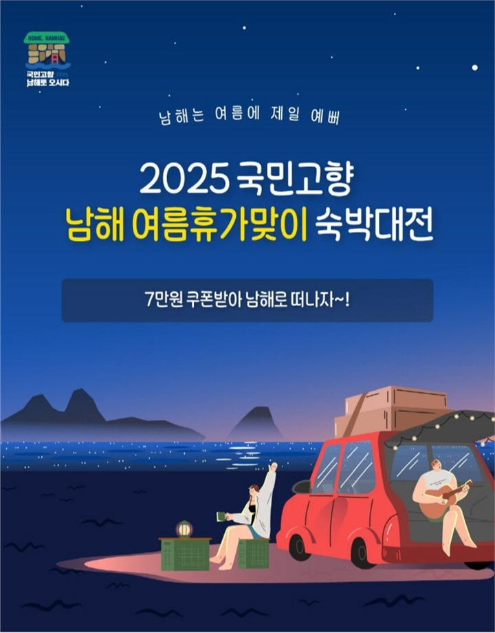 경남 남해군이 ‘2025 고향사랑 방문의 해’를 맞아 여름휴가철 대규모 관광객 유치를 위한 ‘국민고향 남해 여름휴가맞이 숙박대전’을 전개한다. 이번 행사는 원스톱 관광플랫폼 ‘낭만남해’를 중심으로 숙박, 레저, 체험 등 관광 연계 상품에 대한 대대적인 할인 혜택을 제공하며, 오는 6월 한 달간 진행된다.