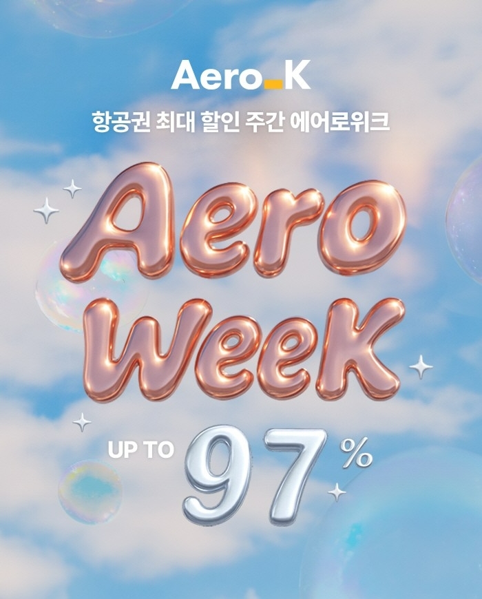 ‘에어로위크’는 에어로케이가 매월 첫째 주마다 진행하는 정기 할인 프로모션으로, 이번 6월 행사는 6월 9일부터 10월 25일까지 탑승 가능한 항공편을 대상으로 한다. 일부 성수기 날짜는 할인에서 제외되며, 프로모션은 공식 홈페이지를 통해 참여할 수 있다.