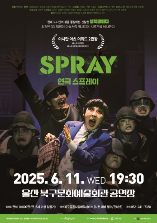울산 북구문화예술회관은 오는 6월 11일 오후 7시 30분, 2층 공연장에서 극단 초인의 연극 '스프레이'를 무대에 올린다. 이번 공연은 (재)예술경영지원센터가 주최하는 2025 공연예술 지역 유통지원 공모사업의 일환으로, 지역민들에게 색다른 문화 예술 경험을 제공할 예정이다.