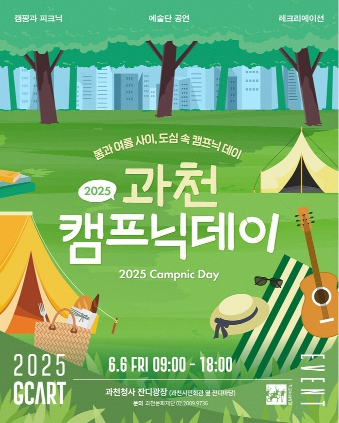 경기도 과천시가 오는 6월 6일 정부과천청사 시민광장(시민회관 옆 잔디마당)에서 ‘과천캠프닉데이: 봄과 여름 사이, 도심 속 캠프닉 데이’를 개최한다. 이번 행사는 도심 속 자연 공간에서 캠핑과 피크닉을 동시에 즐기며 여유로운 하루를 보내는 특별한 시간을 시민들에게 선사하기 위해 기획됐다.
