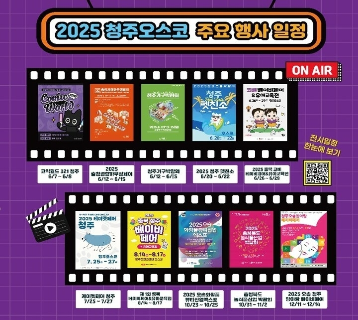7월에는 △2025 더골프쇼 & 더캠핑쇼 in 청주(7.11.~7.13.) △충청가구쇼1(7.17.~7.20.) △청주 케이펫페어(7.25.~7.27.) △렙타일페어 청주(7.26.~7.27.) 등이 열리고, 8월에는 △입주박람회(테크노힐데스, 8.2.~8.3.) △월드로봇올림피아드 한국대회(8.9.~8.10.) △충북 베이비페어 & 유아교육전(8.14.~8.17.) △한화포레나 매봉 입주박람회(8.9.~8.10., 8.30.~8.31.) 등이 예정돼 있다.