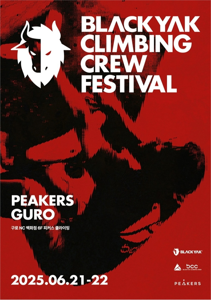 고기능성 글로벌 아웃도어 브랜드 블랙야크(회장 강태선)가 클라이밍짐 ‘피커스(PEAKERS)’와 손잡고 볼더링 대회 ‘블랙야크 클라이밍 크루 페스티벌’을 오는 6월 21일부터 22일까지 서울 구로구 피커스 클라이밍 구로점에서 개최한다. 약 400명의 참가자를 대상으로 펼쳐지는 이번 행사는 현재 선착순으로 참가 신청을 받고 있다.