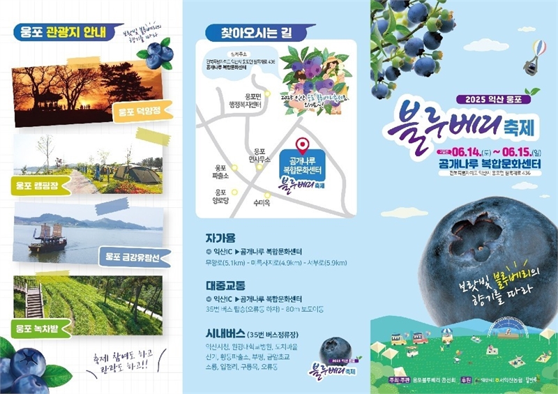정헌율 익산시장은 “신선하고 달콤한 웅포 블루베리를 산지에서 바로 맛볼 수 있는 기회가 될 것”이라며 “많은 시민과 방문객이 축제에 참여해 지역 농산물의 우수성을 직접 체험하고 널리 알리는 계기가 되길 바란다”고 전했다.