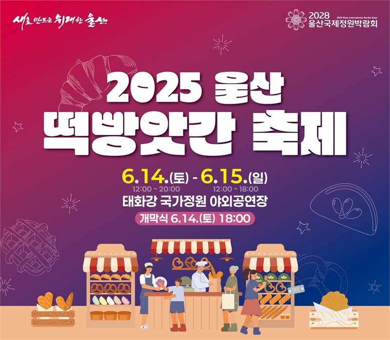 울산 지역을 대표하는 떡집과 빵집이 한자리에 모이는 ‘울산 떡빵앗간 축제’가 오는 6월 14일부터 15일까지 이틀간 태화강 국가정원 야외공연장에서 열린다. 이번 축제는 울산제일일보가 주최·주관하고 울산시가 후원하며, 지역 특산 먹거리 홍보와 시민 소통의 장으로 마련됐다.