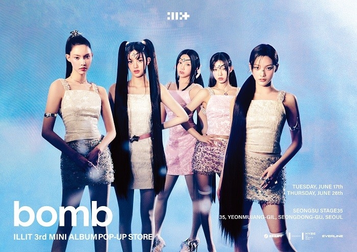 신예 걸그룹 아일릿(ILLIT)이 지난 16일 미니 3집 ‘bomb’으로 컴백한 가운데, 이를 기념하는 팝업스토어가 오는 26일까지 서울 성수동 STAGE35에서 운영된다.