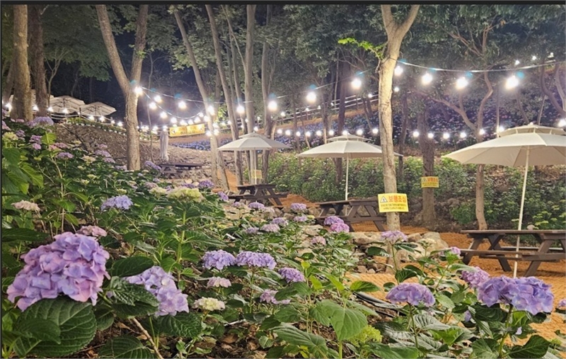 진도군은 지난해 운림산림욕장 내 약 9천 평 부지에 2만 본의 수국을 식재해 지역 내 대표 여름 꽃 명소로 조성했다. 은은한 조명과 산림욕장이 어우러져 무더운 여름밤에도 산책과 힐링을 동시에 즐길 수 있는 공간으로 주목받고 있다.