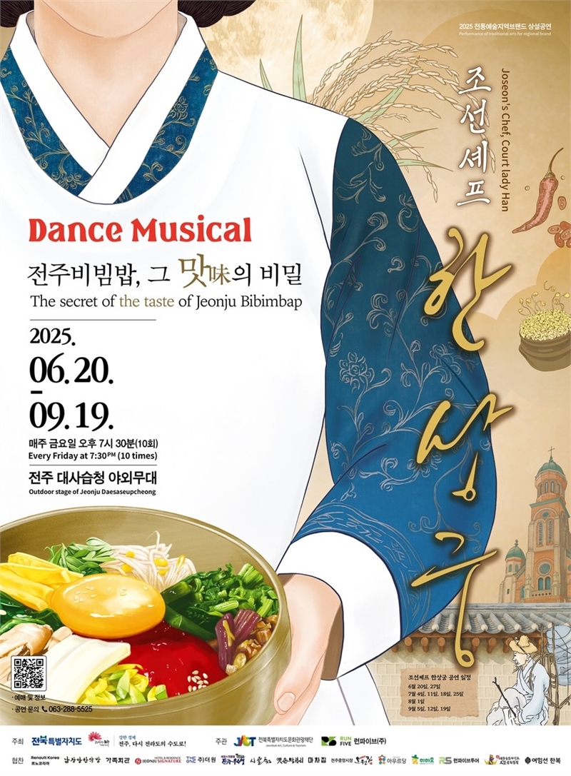 전통과 현대가 어우러진 전주 남부시장을 배경으로 전주비빔밥의 탄생 이야기를 담은 댄스 뮤지컬 ‘조선 셰프 한상궁, 전주비빔밥 그 맛의 비밀’이 오는 6월 20일부터 9월 19일까지 매주 금요일 오후 7시 30분, 전주대사습청 야외무대에서 펼쳐진다.