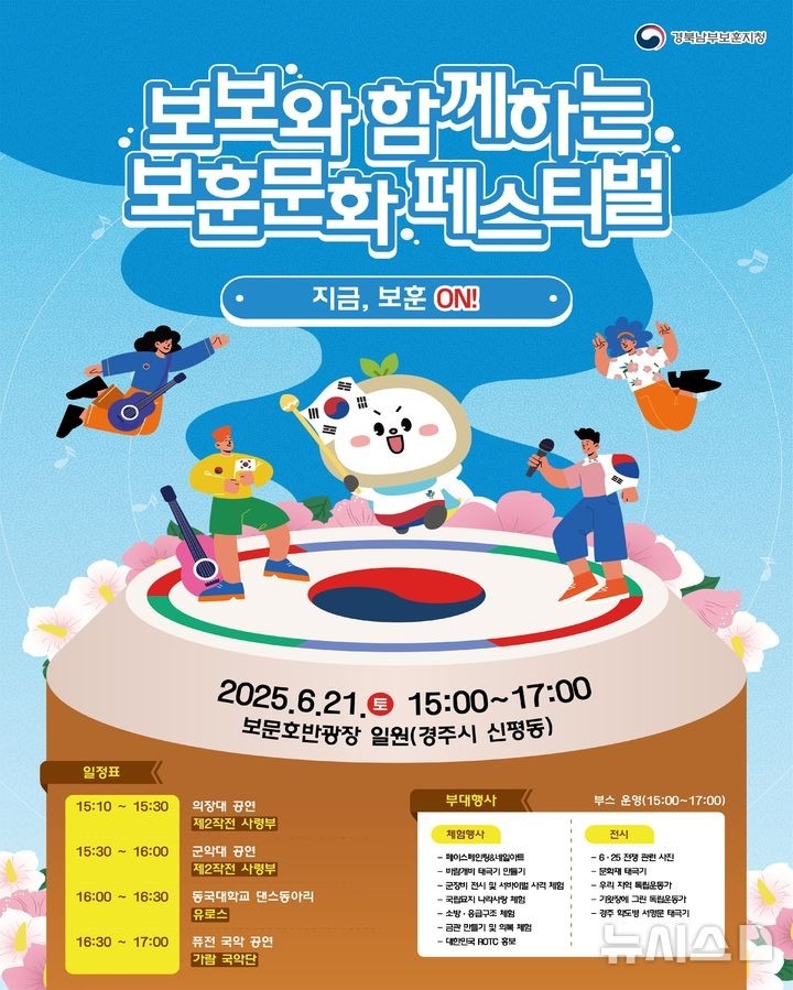 경북남부보훈지청은 호국보훈의 달과 광복 80주년을 기념해 오는 6월 21일 경주시 보문호반 광장에서 ‘보훈문화 페스티벌’을 개최한다고 밝혔다.