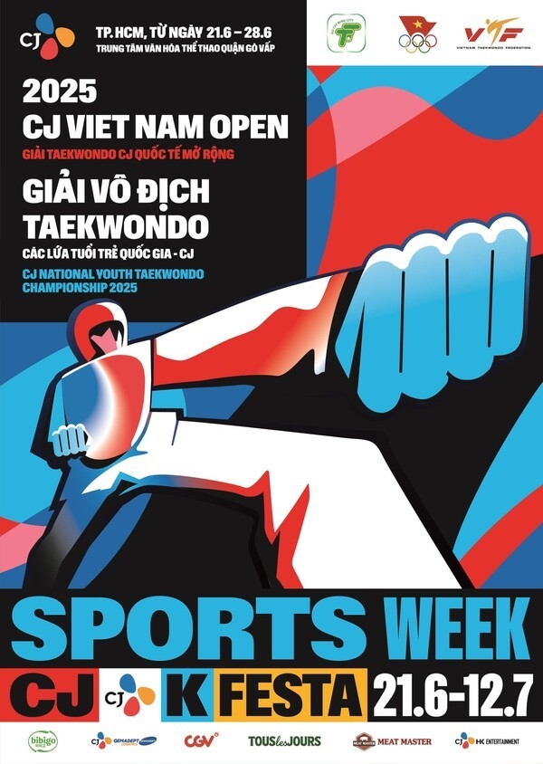 ‘스포츠 위크’에서는 CJ가 13년째 후원 중인 베트남 태권도와 연계한 대표 행사인 ‘2025 CJ 내셔널 유스 태권도 챔피언십’이 21일부터 25일까지 호치민시 고밥 체육관에서 개최된다. 베트남 47개 성을 대표하는 1300명의 청소년 선수들이 참가하며, 이는 베트남 내에서 유일하게 해외 기업이 후원하는 전국 청소년 태권도 대회다. 이어 27~28일에는 ‘2025 CJ 베트남 오픈’이 열리며, 한국, 인도, 브라질, 일본, UAE 등 12개국에서 총 111명이 참가해 남녀 8체급 경기를 펼칠 예정이다.