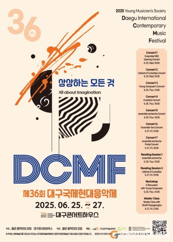 제36회 대구국제현대음악제가 오는 6월 25일부터 27일까지 3일간 대구콘서트하우스에서 열린다. 젊은 음악인의 모임과 대구콘서트하우스가 공동 주최하는 이 행사는 1990년 출범 이후 매년 이어져 오며 국내 대표 현대음악제로 자리 잡았다.