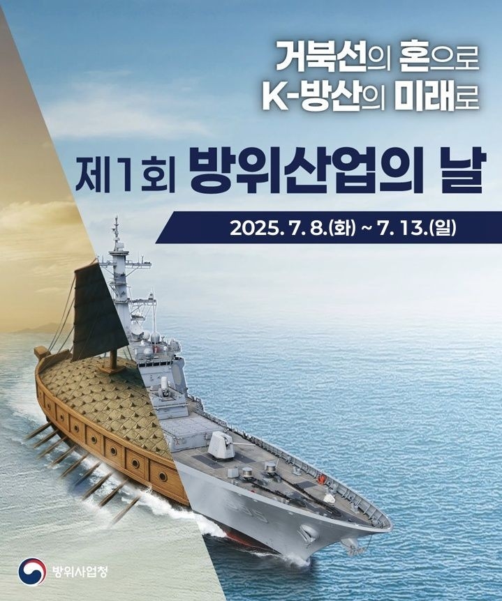방위사업청은 오는 8일 '제1회 방위산업의 날' 기념식을 시작으로 13일까지 다양한 관련 프로그램을 진행한다고 밝혔다. 방위산업의 날은 방위산업의 중요성을 국민에게 널리 알리고자 2023년 방위산업발전법 개정으로 국가기념일로 제정됐으며, 국민공모를 통해 선정된 7월 8일은 거북선이 사천해전에서 첫 출전한 날로, 국토수호 의지를 기리는 역사적 의미를 담고 있다.