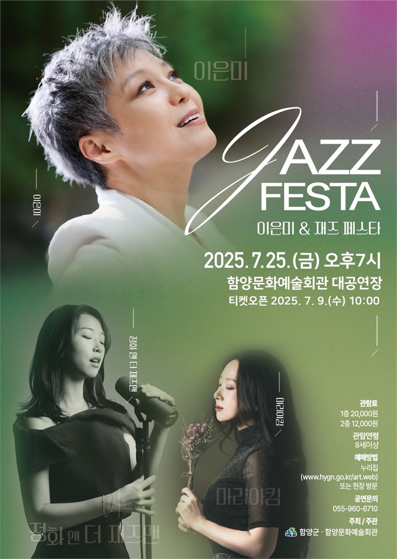 함양문화예술회관 관계자는 “쉽게 접하기 힘든 재즈와 대중적인 발라드를 결합한 특별한 공연”이라며 “온 가족이 함께 즐기며 문화적 감동을 느낄 수 있는 무대가 될 것”이라고 전했다.