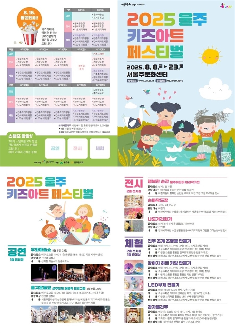 울주문화재단은 지역 어린이집과 유치원을 대상으로 단체 체험 신청을 선착순으로 받고 있으며, 일반 관람은 지역에 관계없이 누구나 참여할 수 있다. 이춘근 울주문화재단 대표이사는 “이번 행사가 어린이들에게 특별한 여름방학 추억이 되길 바란다”며 “많은 가족의 참여를 기대한다”고 전했다.