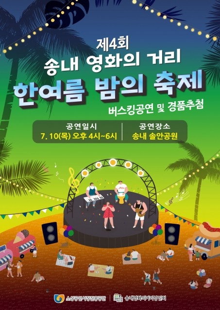부천시 송내동의 대표 지역축제 ‘2025년 제4회 송내 영화의거리 한여름 밤의 축제’가 오는 7월 10일 목요일 오후 4시부터 6시까지 송내 솔안공원에서 열린다. 축제는 송내 영화의거리 상인회가 주관하며, 부천국제판타스틱영화제 기간에 맞춰 열려 지역 상권과 영화제 간 시너지를 도모할 예정이다.