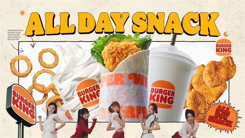 이번 ‘올데이스낵’ 캠페인 모델로는 아이돌 그룹 KiiiKiii(키키)가 참여해 주목을 끌고 있다. 키키가 부른 프로모션송 ‘버거킹에 가면~’은 중독성 있는 멜로디와 쉬운 안무로 젊은 층의 이목을 사로잡고 있으며, 버거킹 앱에서는 ‘올데이스낵’ 스탬프 적립 시 키키 굿즈를 증정하는 이벤트도 진행 중이다.