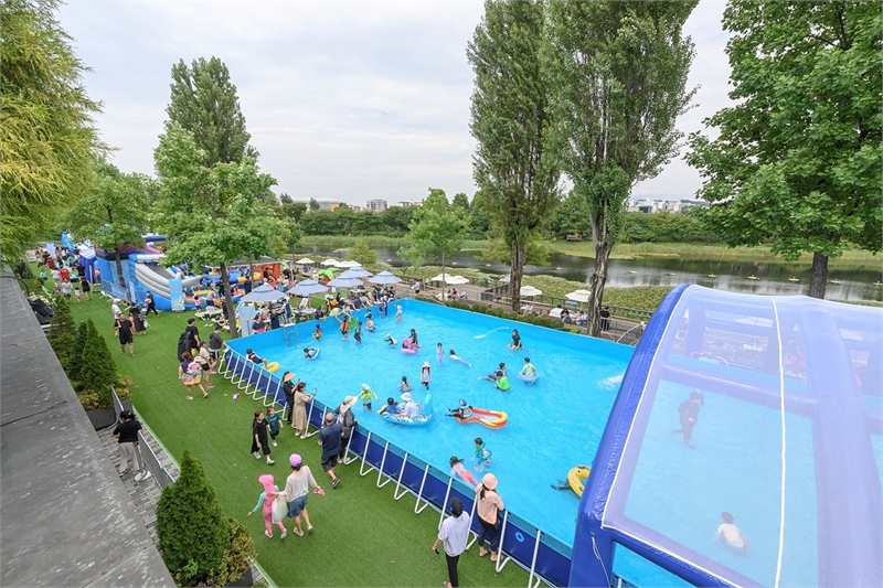 서서울호수공원 문화데크광장에 설치된 물놀이장에는 수심 120cm의 대형 풀장 1동과 유아를 위한 50cm 깊이의 풀장 2동이 마련되며, 워터슬라이드, 물바구니, 분수터널 등 다양한 물놀이 시설이 함께 운영된다. 주말마다 마술 공연, 가족 물총게임 등 특별 이벤트도 열려 아이들에게 잊지 못할 여름 추억을 선사할 예정이다.