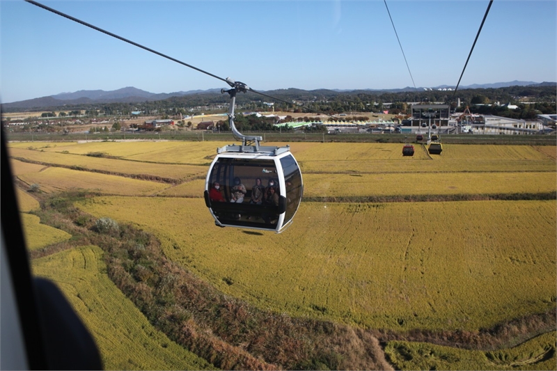 파주임진각평화곤돌라는 국내 최초로 민간인통제선(민통선) 구간을 통과하는 케이블카 시설로, 임진강을 가로지르며 남북을 연결하는 상징적 의미를 지닌 관광 콘텐츠다. 곤돌라는 탑승객에게 평화의 현장을 직접 체험할 수 있는 이색적이고 감동적인 여행 경험을 제공하고 있다.