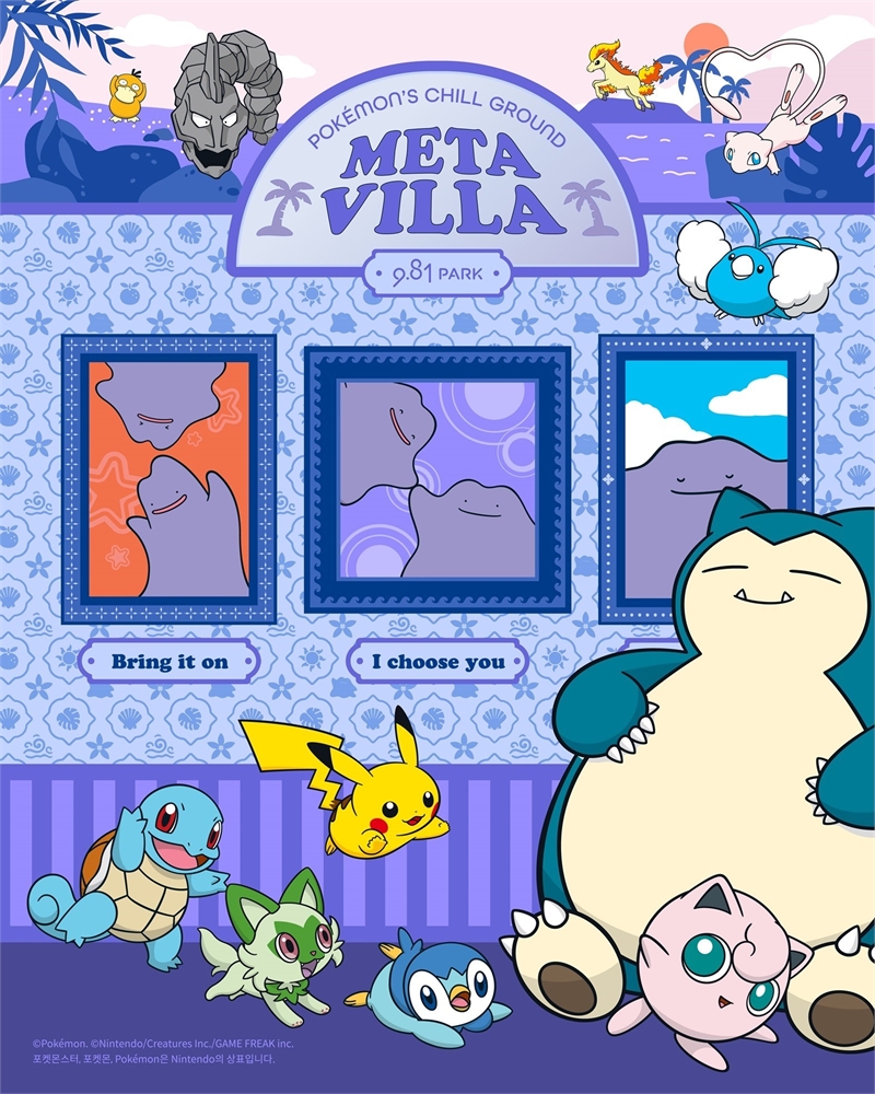 ‘포켓몬: 메타 빌라’는 다양한 모습으로 변신하는 포켓몬 메타몽이 피카츄, 꼬부기, 팽도리, 나오하 등 친구들과 함께 별장에서 여유를 즐긴다는 설정 아래, 방문객이 마치 포켓몬 세계 속을 거니는 듯한 체험형 콘텐츠로 구성됐다.