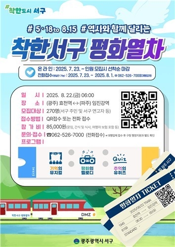 광주광역시 서구가 광복 80주년을 맞아 지역 주민과 함께하는 역사 체험형 프로그램 ‘착한서구 평화열차’를 운영한다. 이번 프로그램은 5·18민주화운동과 8·15광복의 의미를 잇는 역사적 여정을 통해 평화와 통일의 가치를 되새기기 위해 마련됐다.