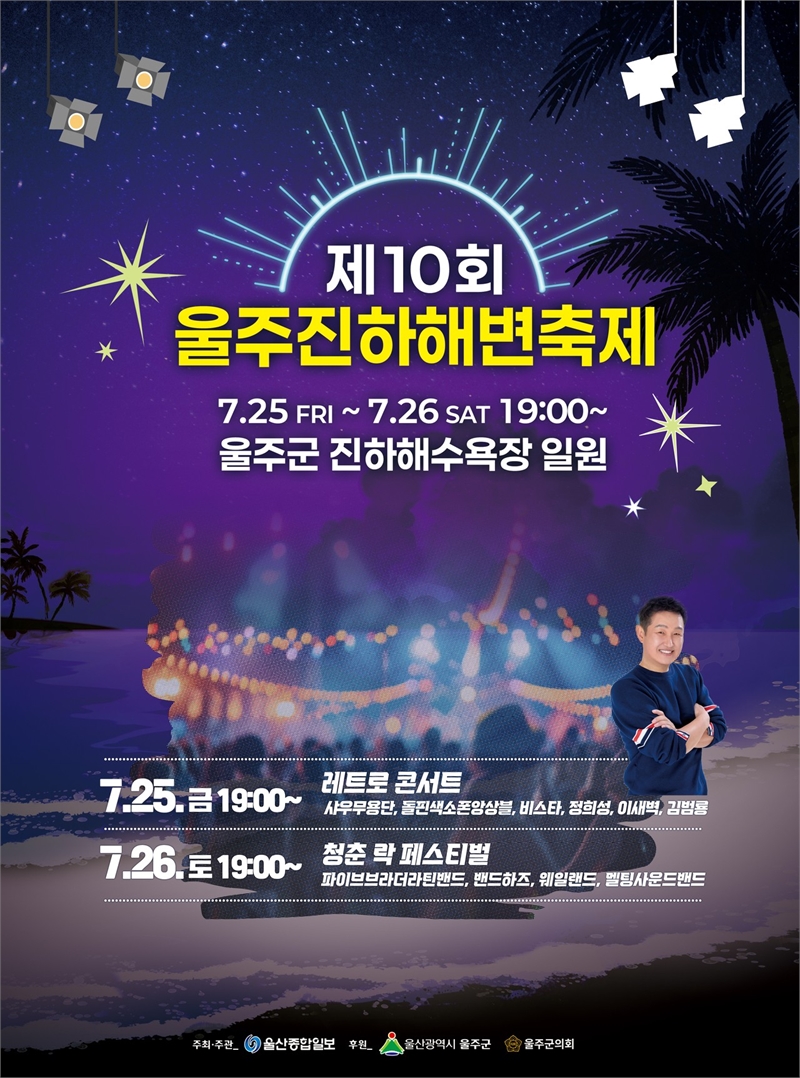 이순걸 울주군수는 “진하해수욕장은 울주군의 대표 해변으로, 이번 축제가 공연문화, 해양 체험, 야간 산책을 아우르는 힐링형 여름축제로 자리매김하길 바란다”며 “많은 시민과 관광객의 참여를 기대한다”고 전했다.