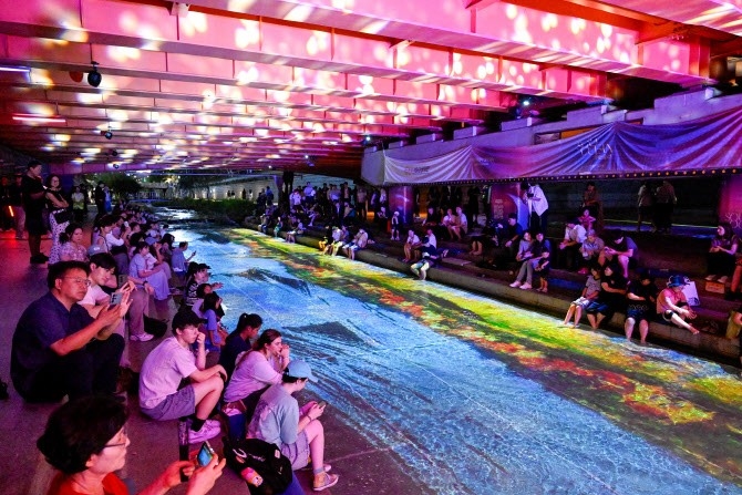 서울 도심 속 야간 미디어아트 전시 ‘청계 소울 오션’이 지난 23일 청계천 일대에서 공식 개막했다. 이번 전시는 지난해 서울빛초롱축제에서 가장 인상적인 작품으로 꼽힌 ‘신비의 물결’을 새롭게 구성한 것으로, 서울의 감성과 예술을 물길 위에 펼쳐보인다는 의미를 담고 있다.